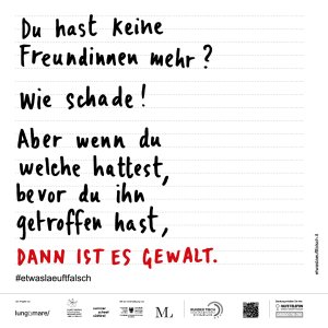 In den nächsten Wochen werden in den Bussen der Verkehrsbetriebe RSVG und RVK sowie in der Linie 66 Plakate zu den Warnsignalen von Gewalt in einer Partnerschaft angebracht bzw. in den Monitoren aufgespielt. Anlass ist der Internationale Tag gegen Gewalt an Frauen am 25. November 2022. „Du hast keine Freundinnen mehr? Wie schade! Aber wenn du welche hattest, bevor du ihn getroffen hast, dann ist es Gewalt.“ So heißt es beispielsweise auf einem der als Notizzettel wirkenden Plakate. Diese wurden in Südtirol entworfen und machen die unterschiedlichen Facetten von Gewalt anschaulich.